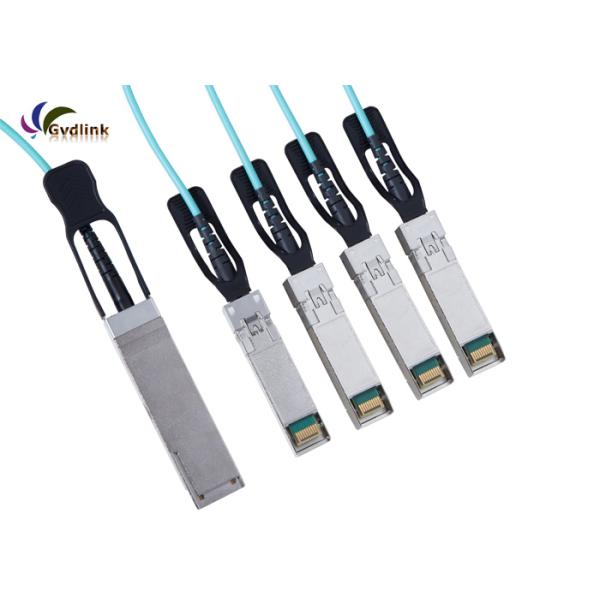 Gvdlink 40G QSFP+ to 4XSFP+Active Optical cable is an assembly of 4 full-duplex lanes and each lane is capable of transmitting data at rates up to 10.3Gb/s , providing an aggregated rate of 41.2Gb/s . The length is up to 300 meters using OM3 MMF .